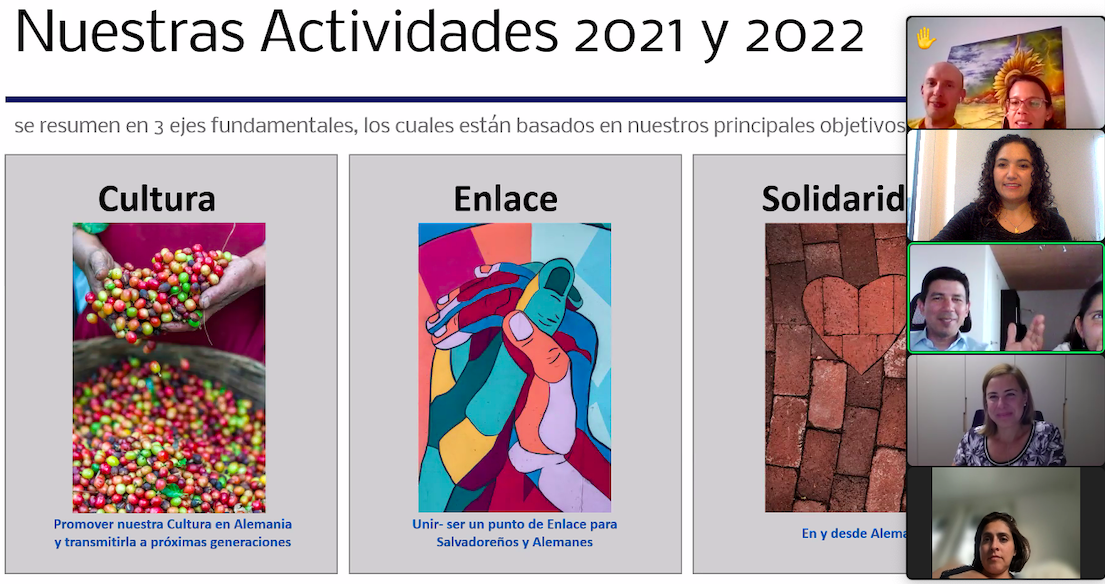 Unser Verein arbeitet daran, die salvadorianische Kultur, Kunst, Gastronomie und Folklore in verschiedenen Formaten in Deutschland zu verbreiten – sowohl für die jetzige als auch für zukünftige Generationen. Wir möchten Salvadorianer, die in Deutschland leben, sowie Deutsche, die unser „pulgarcito“ kennenlernen oder besser verstehen möchten, willkommen heißen und integrieren, um den kulturellen Austausch zu fördern. Unser Ziel ist es, internationales Denken, Toleranz, Dialog und gegenseitiges Verständnis zwischen beiden Kulturen zu fördern.